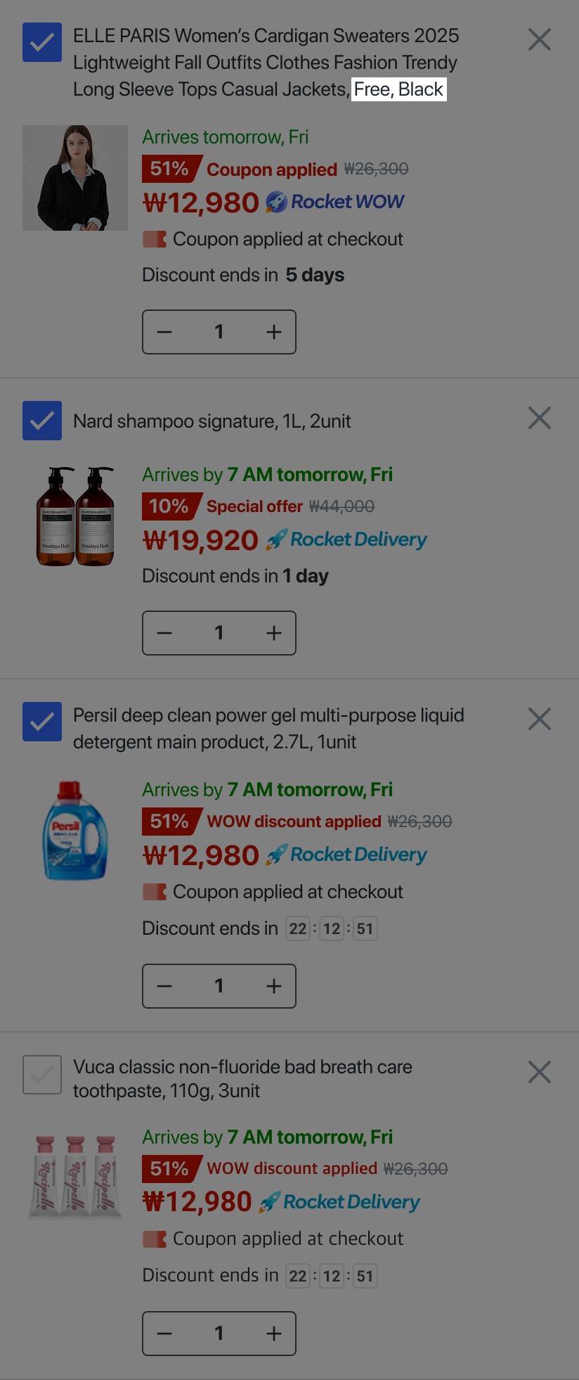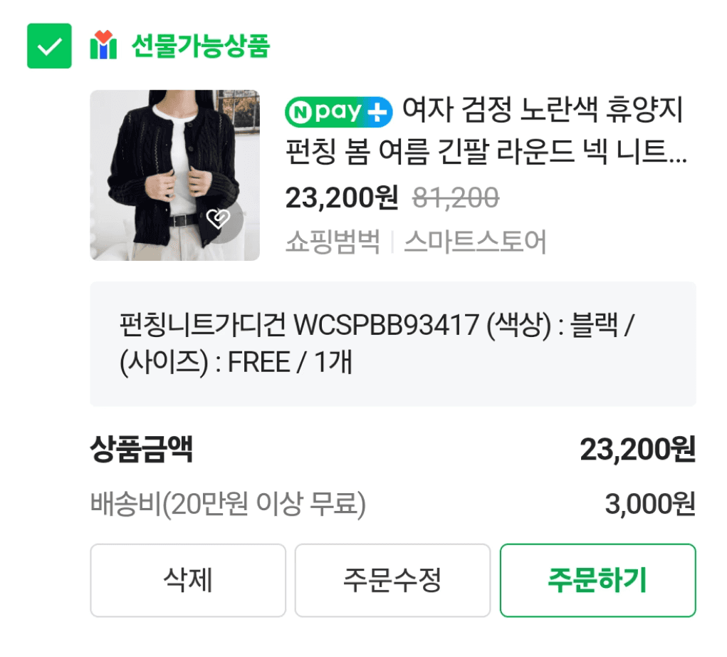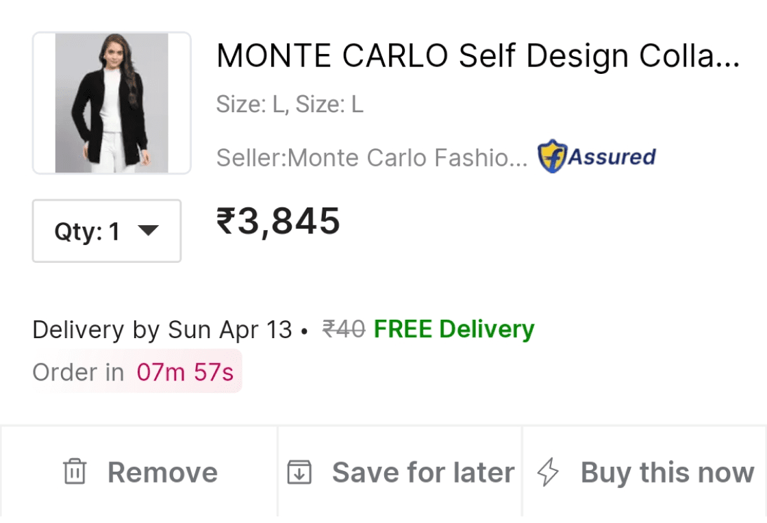 We showed a cart page with three products and asked them what the option was for the top-listed cardigan.